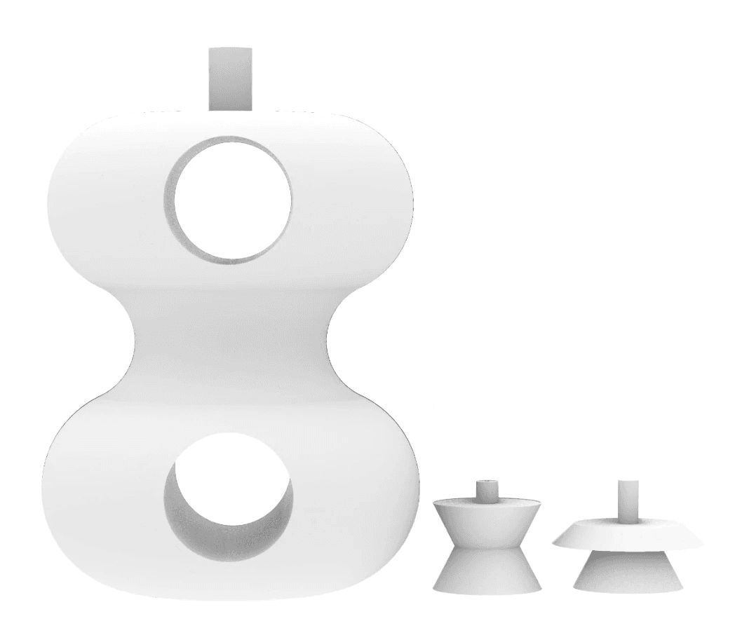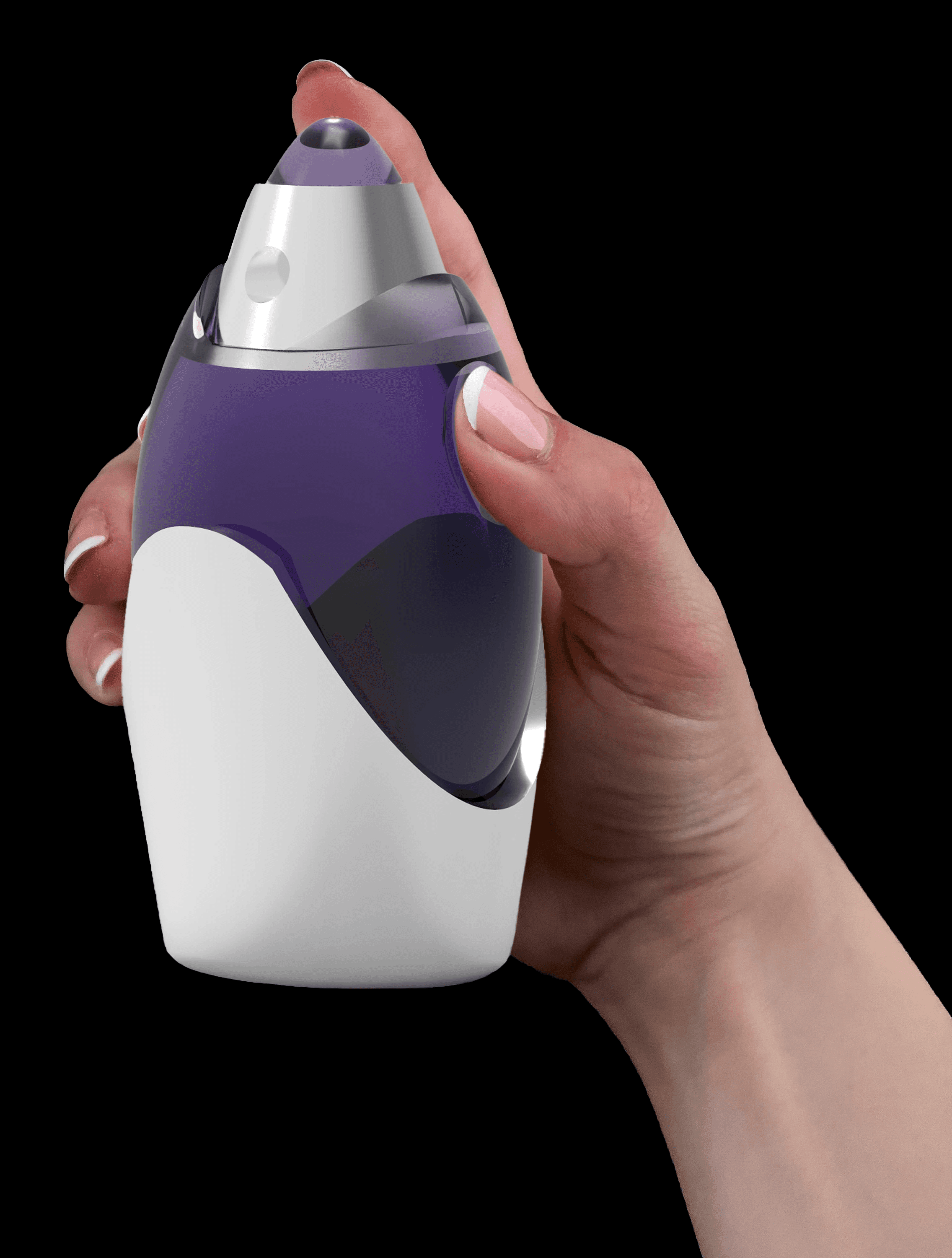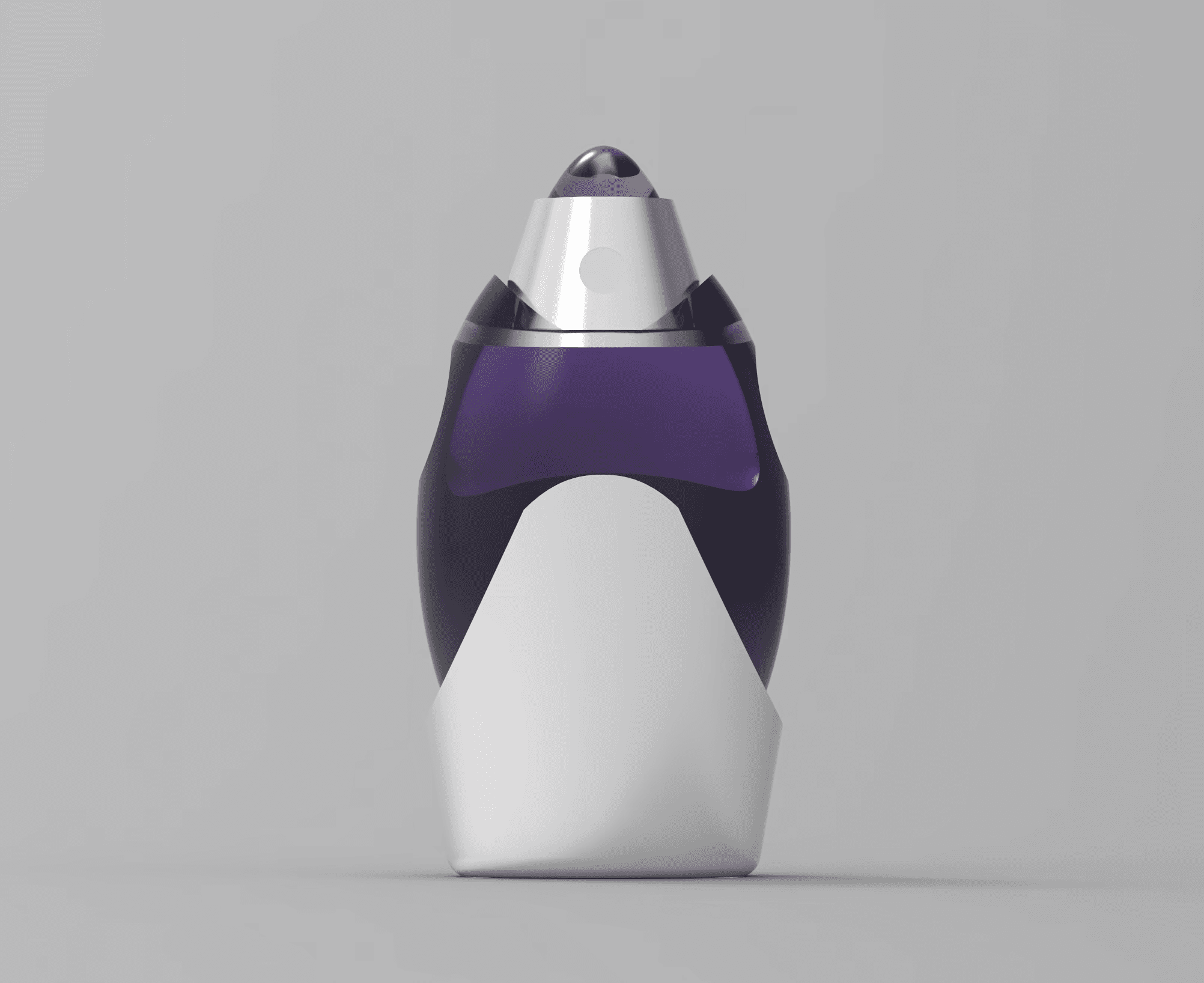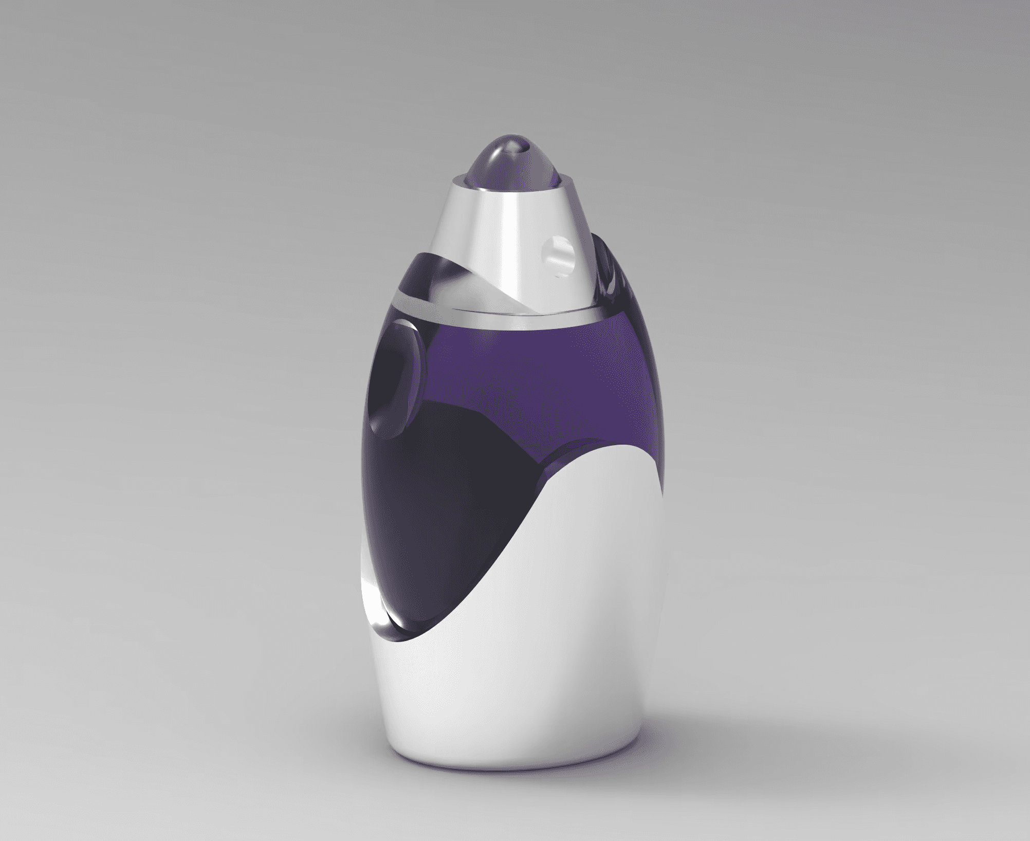 Through a simplified lens, the form integrates male and female anatomical references to appeal to a unisex audience while maintaining a futuristic aesthetic inspired by the silhouette of a rocket. Subtle divots along the sides of the bottle enhance ergonomics and improve grip, prioritizing user interaction alongside visual form. The use of white resin in the final print accentuates the object's sculptural quality while providing a smooth, tactile finish. Design development was guided by a focus on balancing user experience with visual impact.