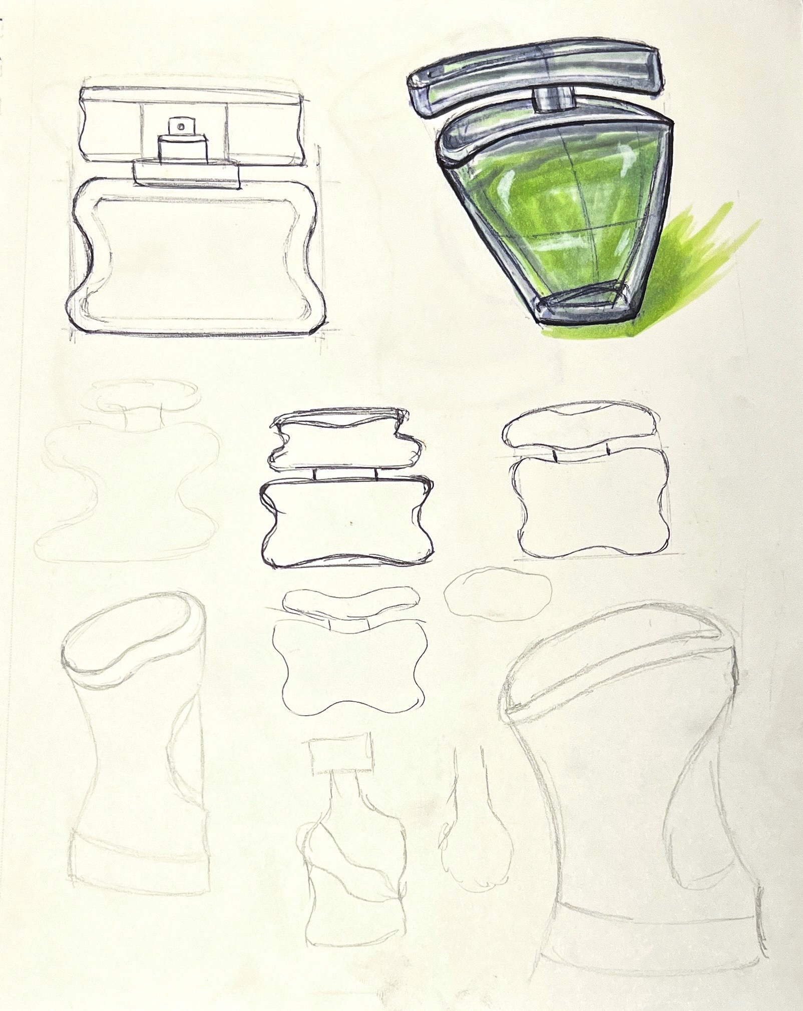 The target user is a design-conscious, gender-neutral consumer who values innovation, self-expression, and forward-looking aesthetics. Drawn to progressive and nontraditional forms, they seek products that challenge established norms while remaining refined, intentional, and functional. This user is attracted to objects that reflect an evolving perception of gender and futurism, favoring designs that feel predictive rather than conventional. The fragrance bottle responds to these preferences by pushing beyond traditional unisex perfume design through experimentation in form and material, resulting in a tactile, speculative object that signals individuality, progression, and meaningful everyday use.