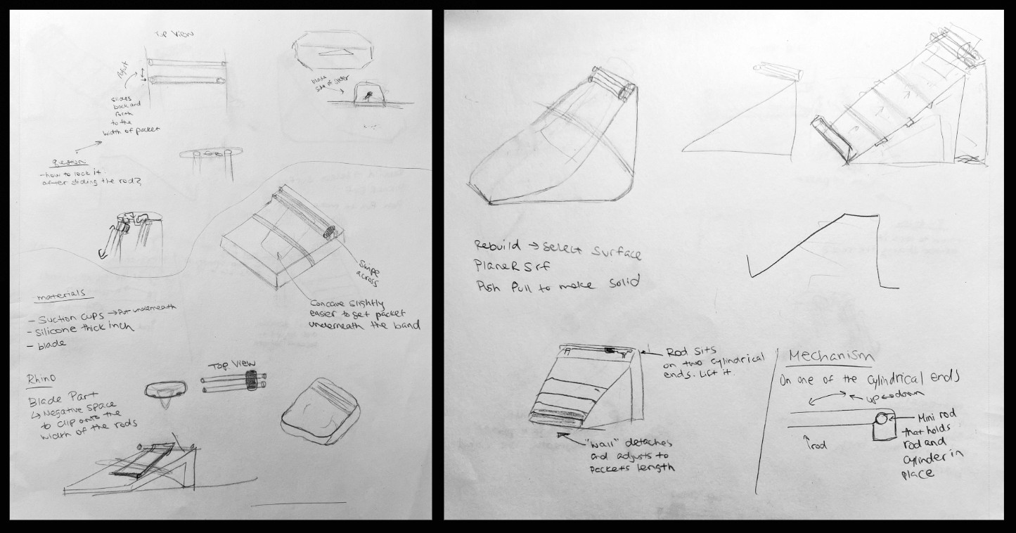 Rhino 3D modeling to develop form, ridges, and the integrated rod-and-blade mechanism.